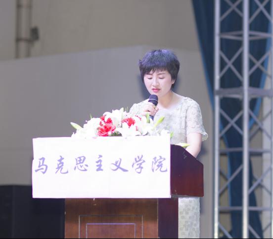 表彰大会结束后,动感火热的开场舞《DALLA DALLA》点燃了毕业晚会。《我的新衣》将现代说唱与传统京剧相融合,使人耳目一新;现代舞《pick me up》、《heart shaker》清纯可爱,活力无限;民族舞《女儿会》、《锅庄风情》柔婉袅娜、质朴潇洒,赢得现场阵阵掌声;歌曲《私奔到月球》、《不为谁而作的歌》温柔甜美、娓娓动听,让人赏心悦耳;《创意T台秀》和相声《我说了算》多元创新、包袱连连,让人忍俊不禁,掌声不断。贾廷秀教授指导的暖课作品《以青春致敬马克思》也再次搬上了毕业晚会的舞台,思政2017级的同学们用话剧的形式展现了青年马克思的雄才伟志,以及他与恩格斯的深厚友谊;肖芬蓉老师的女儿班传珮小朋友也献唱了让人倍感清新流畅的民谣《卢沟谣》;思政11602班的朗诵《不说再见》,追忆了大学时光的点点滴滴,表达了他们对学长学姐的感恩与不舍;毕业班的情景剧《长大,长大,再见》压轴出场,一幕幕情景剧记录了2019届毕业生在长大、在马院难忘的青春岁月,引发了师生强烈共鸣。最后,贾廷秀等7位长江大学教师合唱团的老师们用优美的歌声《闪亮的日子》为毕业生们送来祝福,晚会在全体教师共同演唱的《送别》中落幕。