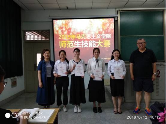 (通讯员:周儒峰)2019年6月12日上午8点,suncitygroup太阳集团网址师范生教学技能竞赛决赛在东校区13教A302隆重举行。我院党总支书记吴志勇老师、副院长黄晓云老师、政治系主任贾廷秀老师、周涛老师、卢军老师、汤波兰老师以及思想政治学科教学论教师万敏应邀担任本次比赛的评委。