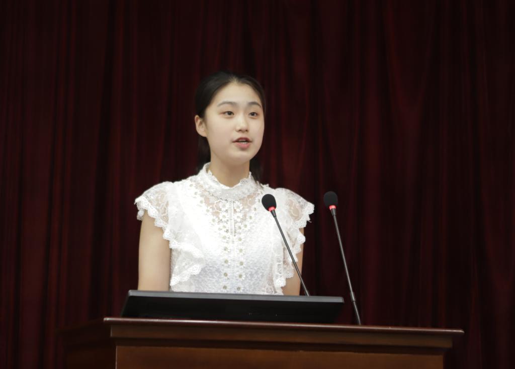 “我们要不忘学习初心,牢记时代使命,立鸿鹄志,练真本领,做实干家”,新生代表张馨月号召2019级新同学珍惜大学时光,以时不我待、只争朝夕的精神刻苦学习,拼搏奋进。老生代表罗金从“零点起跑,事事争先”、“相信自己,选择优秀”、“知行合一,止于至善”三个方面激励大家在求学之旅上坚守本心,披荆斩棘,勇往直前!