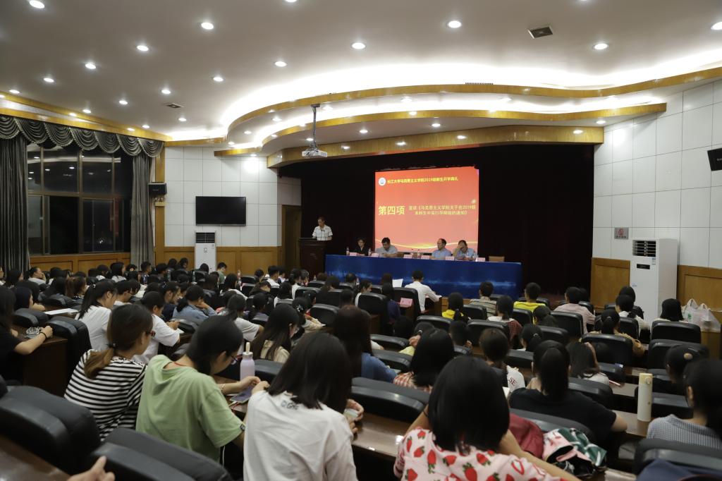 院长助理徐骆引经据典,从时间、态度、方法、目的四个角度,风趣幽默地为2019级新生作学风建设动员报告,赢得阵阵欢笑与掌声。他希望同学们扎实学习,实现人生的“豹变”。