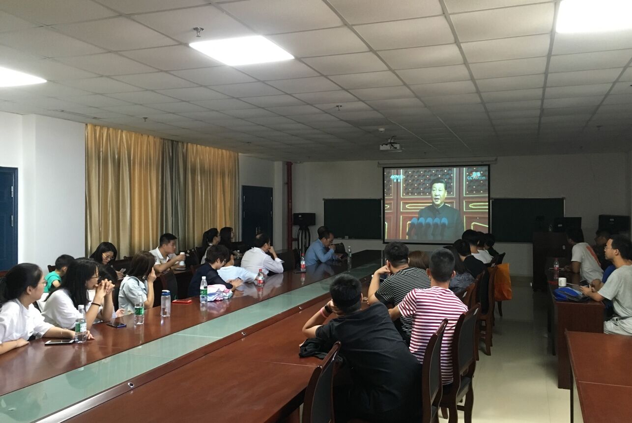 10月1上午,suncitygroup太阳集团网址党委组织党委委员、各党支部书记、学生党员及入党积极分子在文科大楼1104会议室集中观看了中华人民共和国成立70周年庆祝大会及阅兵式。