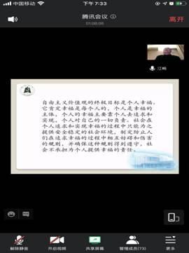 (通讯员 郑亚岚)2020年11月22日晚7:00,长江大学“世界哲学日”系列学术讲座第五讲——“西方价值观检视”按期进行,主讲人是教育部长江学者特聘教授、湖北大学高等人文研究院名誉院长、湖北大学哲学学院教授、博士生导师、中华文化发展湖北省协同创新中心主任江畅教授。