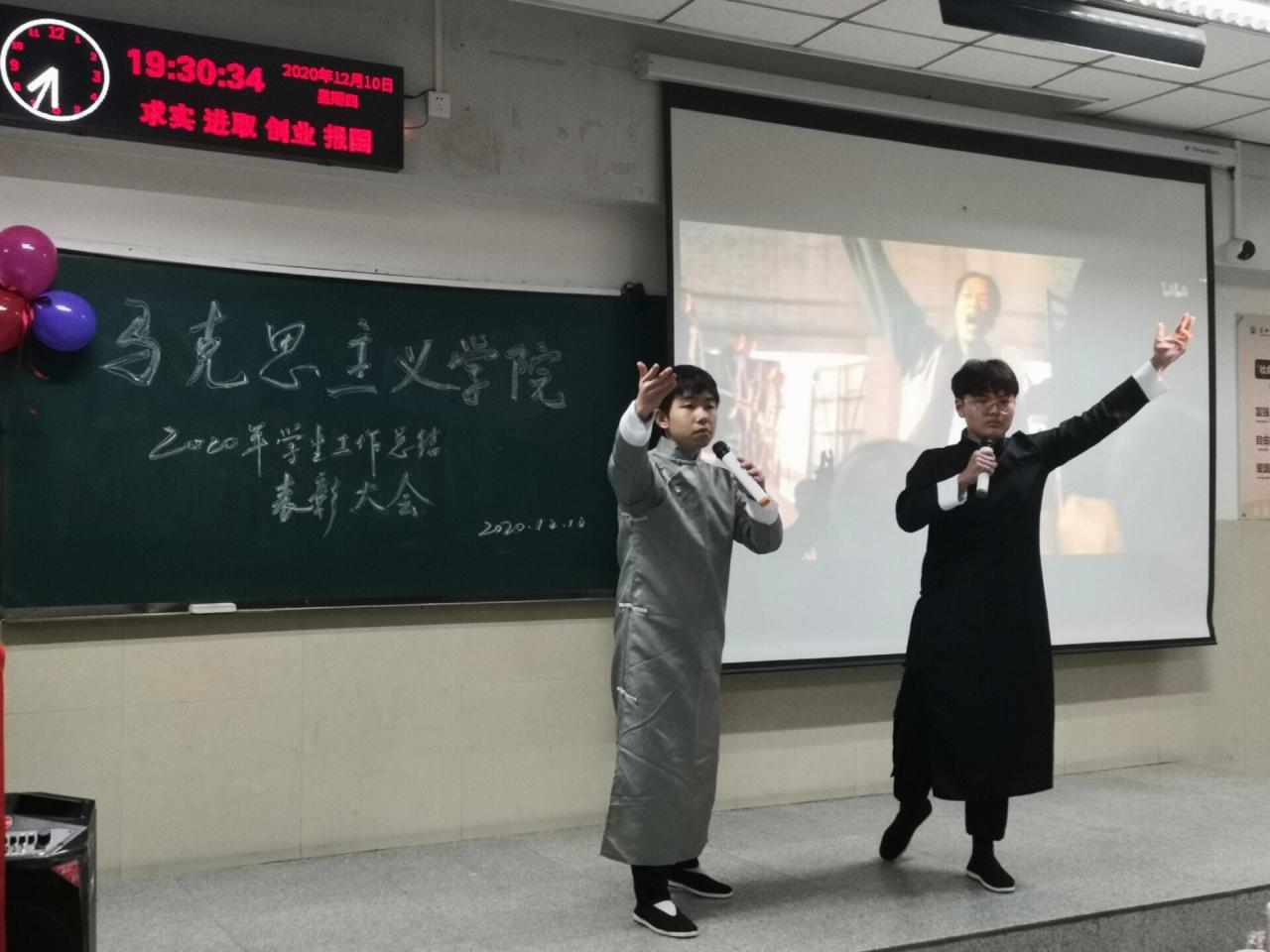 (通讯员 王晓彤)律回春渐,万象更新;艰难困苦,玉汝于成。12月10日晚7点,suncitygroup太阳集团网址在12教202室举行了2020年学生工作总结表彰大会。学院党委书记吴智勇、党委副书记马小佼、青年教师谭梦媛、学工办主任张云雾、辅导员李敏和学院全体在校学生参加了活动。