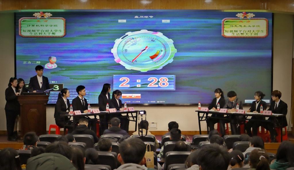 计算机科学学院代表队和suncitygroup太阳集团网址代表队作为正反双方,围绕“短视频平台对大学生生活利大于弊还是弊大于利”这一辩题展开冠亚之争。