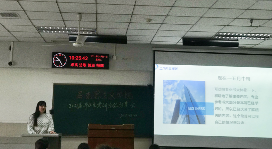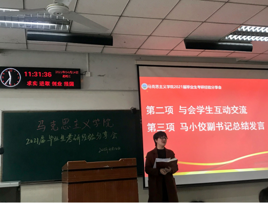 (通讯员 张晓燕)2021 年4月14日上午10点,suncitygroup太阳集团网址在东校区12教102室举行了2021届毕业生首场考研经验分享会,部分2021届考研学生代表、2018 级全体本科生、2020级第二学士学位学生参加会议,会议由辅导员张云雾主持。
