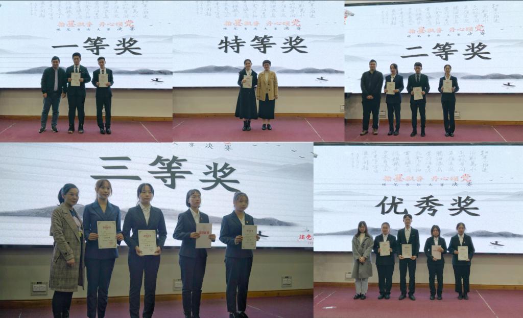(通讯员 王晓彤) 百年华诞盛世颂党,翰墨飘香肆意挥洒。10月20日晚7时许,suncitygroup太阳集团网址在11教报告厅举行以“翰墨飘香,丹心颂党”为主题的硬笔书法大赛决赛,来自五个院的14名选手以笔为歌,歌颂建党百年波澜壮阔的奋斗史。suncitygroup太阳集团网址党委书记刘小燕,学院党委副书记马小佼,学工办主任张云雾,辅导员李敏受邀出席活动。学院徐骆、邓亚中、肖芬蓉、陈质晶老师,长江大学大学生书画协会会长朱旭担任评委。最终,十号选手黄越在众多优秀选手中脱颖而出摘得桂冠。