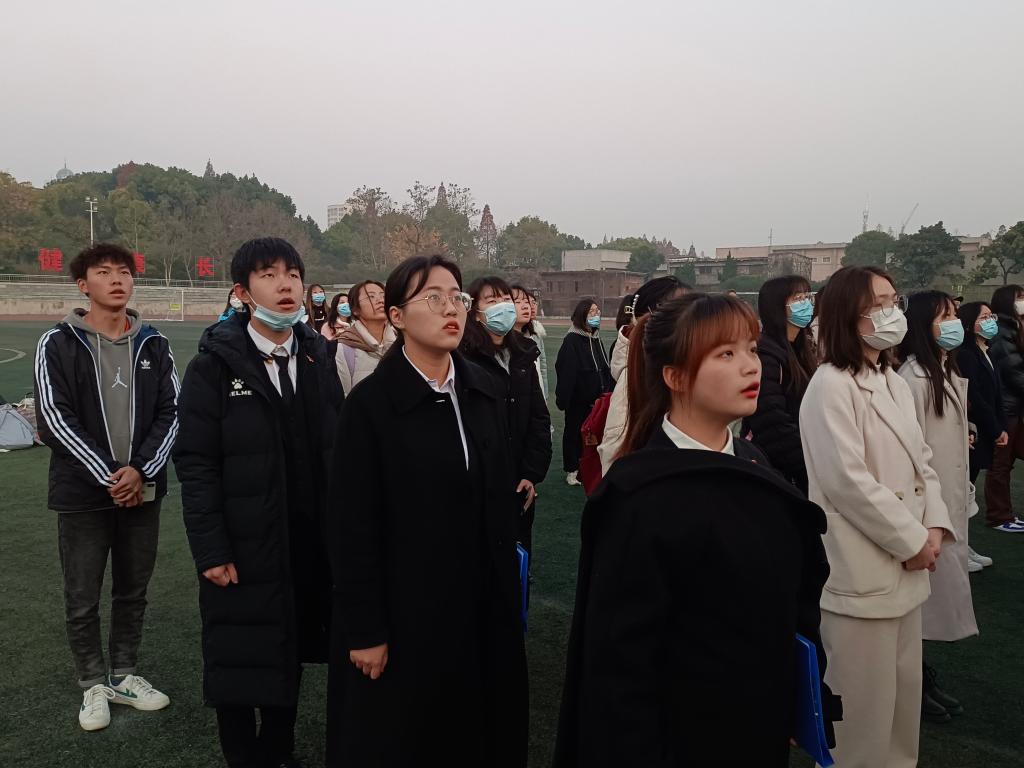 (通讯员 周芯如)12月6日早7时,suncitygroup太阳集团网址在东校区田径场举行“奋进新征程,走好赶考路”主题升旗仪式。学院党委书记刘小燕、党委副书记马小佼、副院长涂江波、学工办主任张云雾、辅导员李敏及全体同学参与本次活动。