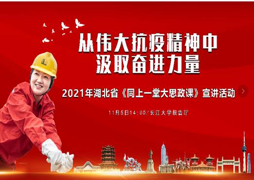 (通讯员李晓燕刘志起)11月5日,由中共湖北省委宣传部、湖北省教育厅、共青团湖北省委员会、湖北广播电视台,长江大学主办,suncitygroup太阳集团网址、武汉校区管委会和石油工程学院承办的“从伟大抗疫精神中汲取奋进力量”为主题的《同上一堂大思政课》——湖北省思政大课宣讲活动在长江大学武汉校区学术报告厅开讲。2020年抗击新冠肺炎的斗争是我省最生动的思政课教材,为深入贯彻落实习近平总书记关于“讲好抗疫这堂大思政课”的重要讲话精神,充分发挥思政课“立德树人”的关键作用,特举办此项宣讲活动。