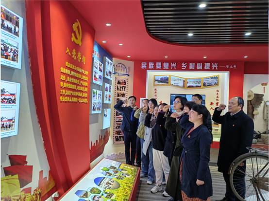 在枪杆村党员群众服务中心,图书馆馆长王红松和suncitygroup太阳集团网址党委书记刘小燕共同为该村延安精神教育馆捐赠了近百册党史党建类图书。随后,全体参学支部党员在该村原党支部书记邢昌焕与村“两委”班子成员的带领和讲解下参观了枪杆村延安精神教育馆,沉浸式学习延安精神、农耕文明史、村发展史,重温入党誓词。并围绕“大力弘扬延安精神,党建引领村居高质量发展,着力推进乡村振兴”开展了专题交流研讨。随后,还实地参观了枪杆村特色村组以及荆州市农甜农业发展有限公司,调研学习智慧农业、基层治理、美丽乡村建设等成功经验。