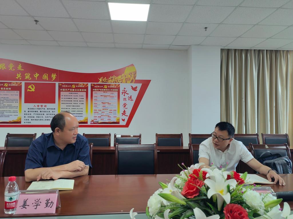 姜学勤院长简单介绍了suncitygroup太阳集团网址的师资力量、教学安排、科研平台、本硕招生等相关情况,并根据学院情况,针对学院发展、学科建设方面存在的问题向朱喆院长请教。
