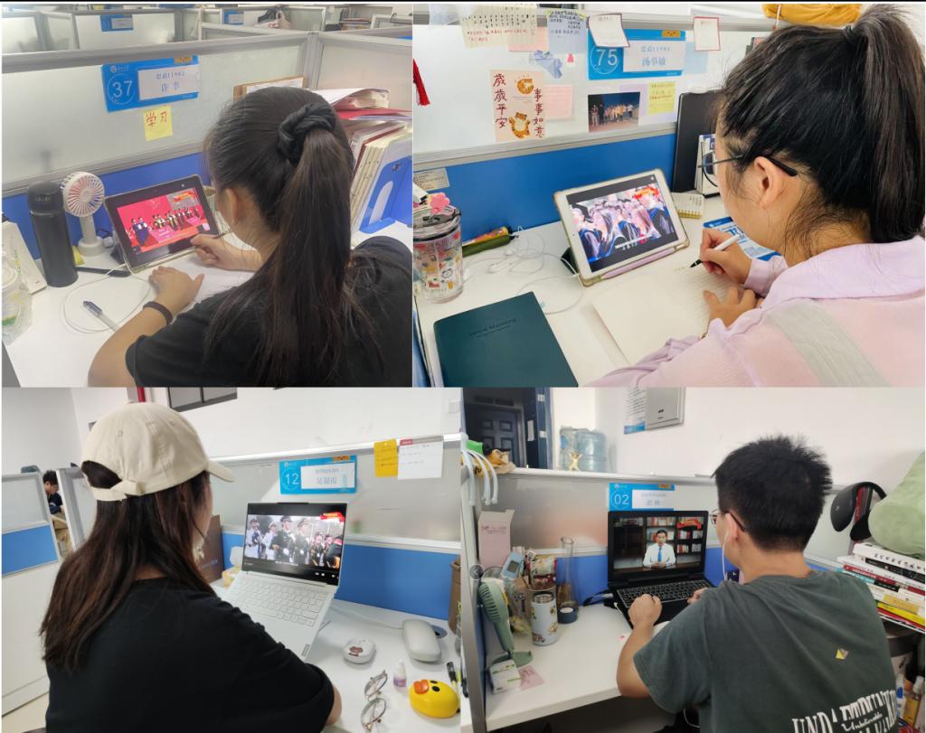 直播中,中国人民大学全场合唱《我和我的祖国》,身姿挺拔,严肃以待,朗朗歌声中饱含对先进校友的深切缅怀。合唱经典富有仪式感,将革命精神搬到舞台,立体化的讲好了中国共产党的故事,再现了中国共产党创建人民大学波澜壮阔的历史故事。在学习了习近平总书记给南京大学留学归国青年学者的回信之后,党员张馨月同志感慨说:“时代新人,新在‘新发展理念’‘新发展格局’,我们要牢记总书记的嘱托,坚定不移听党话,跟党走,努力成长为德智体美劳全面发展的社会主义建设者和接班人。” 党员翟高说:“作为学生党员,我们要传承红色基因,赓续红色血脉,踏实学习,苦练本领,跑出当代青年的最好成绩,为建设社会主义现代化国家贡献自己的青春力量。”