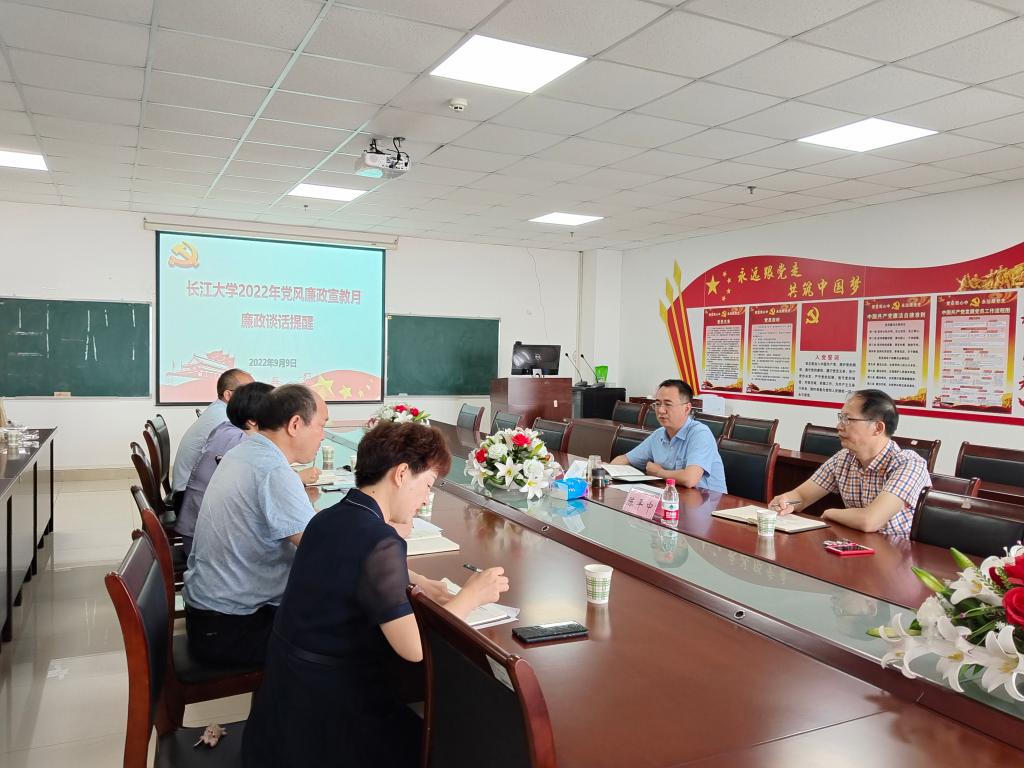 在学校党风廉政建设宣讲月活动深入开展之际,为落实全面从严治党监督责任,校党委书记王建平、校纪委副书记陈平中于9月9月上午来到suncitygroup太阳集团网址,对我院全体班子成员开展了谈话提醒。