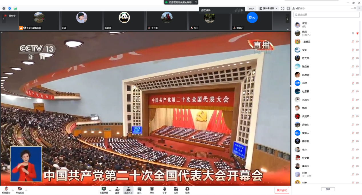 10月16日上午10时,中国共产党第二十次全国代表大会在北京人民大会堂隆重开幕,suncitygroup太阳集团网址师生齐聚线上,聚精会神地收看了大会开幕盛况。