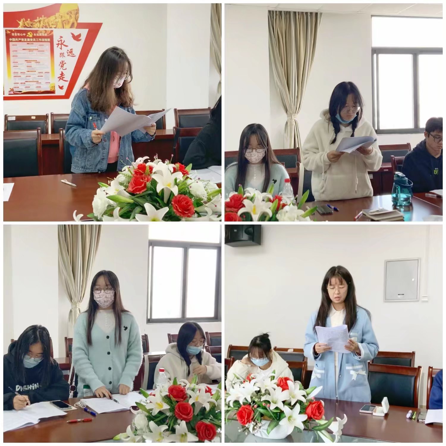 会议伊始,李敏带领学员们精读二十大报告原文,学员们埋首报告中,落笔精华处,记录着感触和心得,从每一字每一句中品读要义、领悟精神。阅读后,学员们纷纷起身朗读并分享自己的心得。“自我革命在面也在点,青年群体的自我发展,也要自我革命。”鸿举三组何利娅,从党的自我革命中感想学生干部也应该时刻进行自我批评与自我反思,方能行稳致远;致远一组何美铃,则立足中华优秀传统文化提出文艺创作一定立足实践了解人民大众的需求;“教给学生一碗水,自己就要有一桶水”,教育者先受教育,君玚二组杨杰说,作为青年师范大学生,应该努力提高自己的专业能力,增强思想认同、政治认同,不待扬鞭自奋蹄,跑出青春的最好成绩。