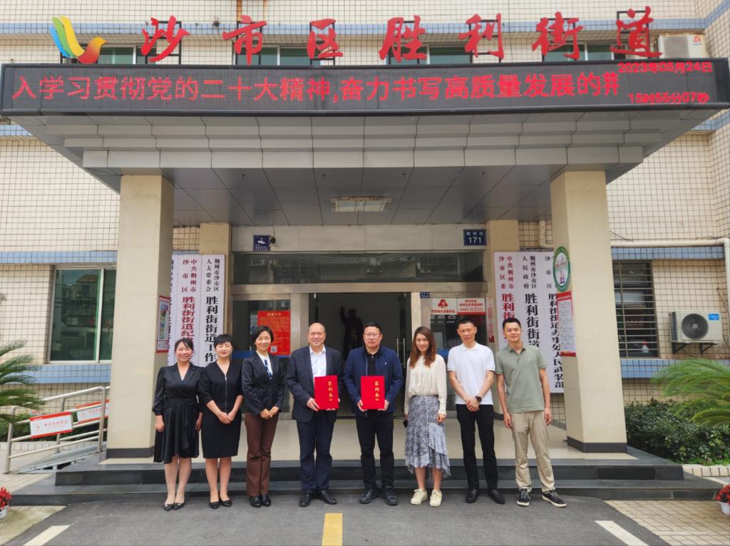 5月24日下午,suncitygroup太阳集团网址与沙市区胜利街道合作签约仪式在该街道会议室举行。胜利街道党工委书记彭湃及班子成员陈永红、冯小明、刘润志,我院姜学勤院长、刘小燕书记、马小佼副书记共同出席了仪式。