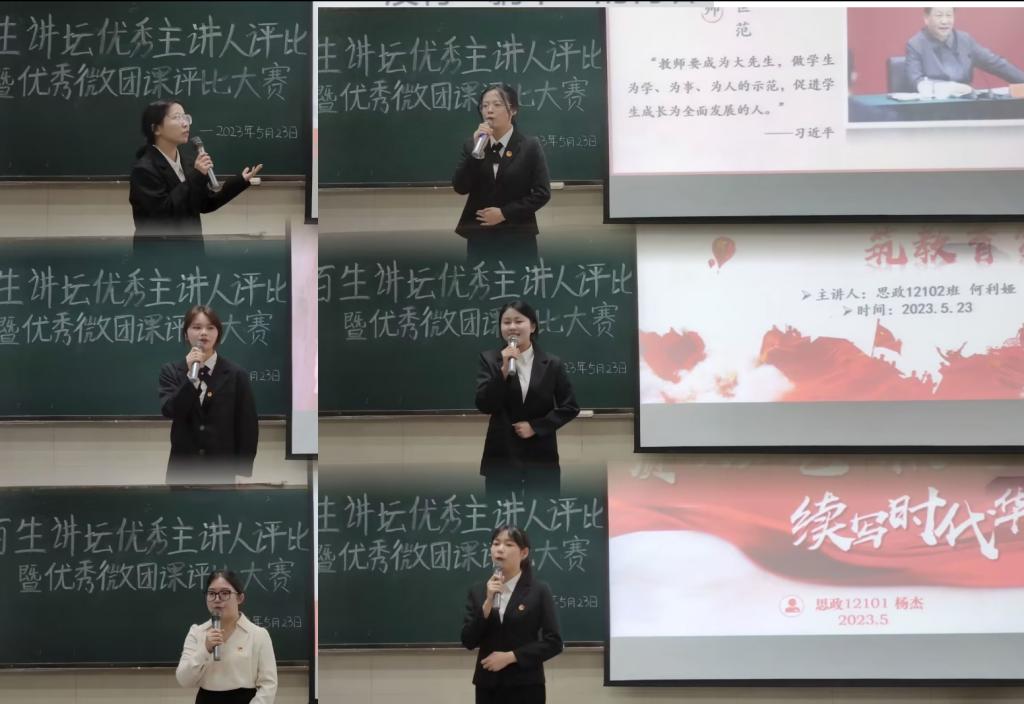 (通讯员 史欣蕊)为学习贯彻党的二十大精神,深入领会习近平总书记关于青年工作的重要思想,5月23日晚7时,suncitygroup太阳集团网址于12教104室举办2023年“百生讲坛”优秀主讲人评比暨优秀微团课评比大赛。学院党委副书记马小佼、学工办主任张云雾、青年教师陈质晶、辅导员李敏及全体大一学生参会。