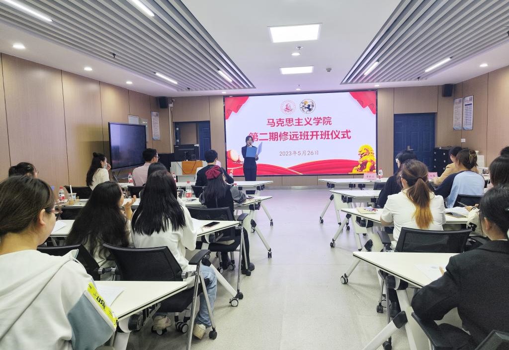(通讯员 刘若曦)5月26日晚7时,suncitygroup太阳集团网址于文科楼1008室举行第二期修远班开班仪式。学院党委副书记马小佼、副教授黄晓云、学工办主任张云雾、辅导员李敏和全体学员参加开班仪式。