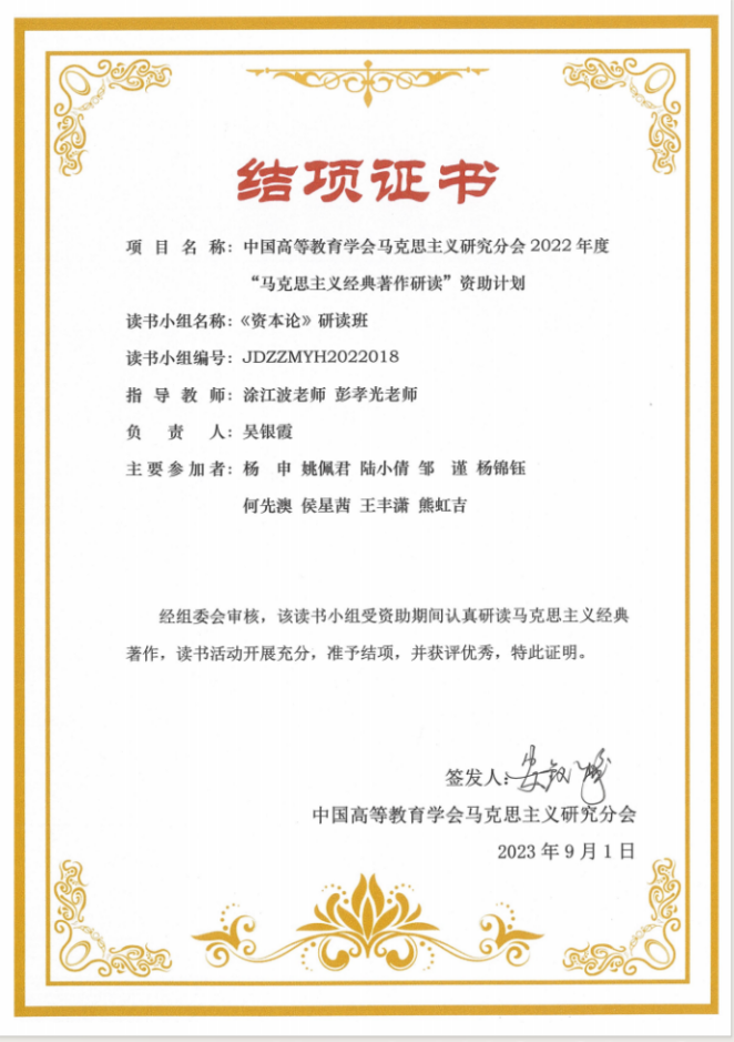近日,中国高等教育学会马克思主义研究分会2022年度“马克思主义经典著作研读”资助计划公布了结项结果。suncitygroup太阳集团网址“追光”研读班荣获“优秀读书小组”称号。