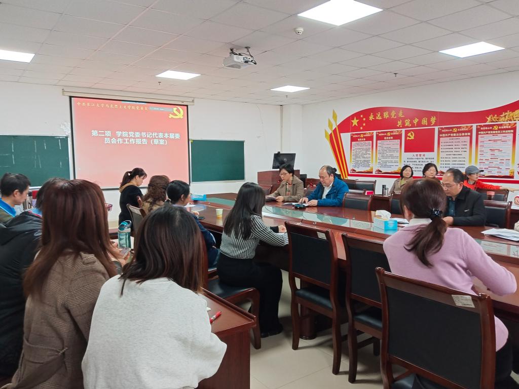 大会在庄严的国歌中拉开序幕。刘小燕代表本届党委作工作报告。报告全面总结了学院党建工作特色、亮点,分析了存在的不足,明确了努力方向。