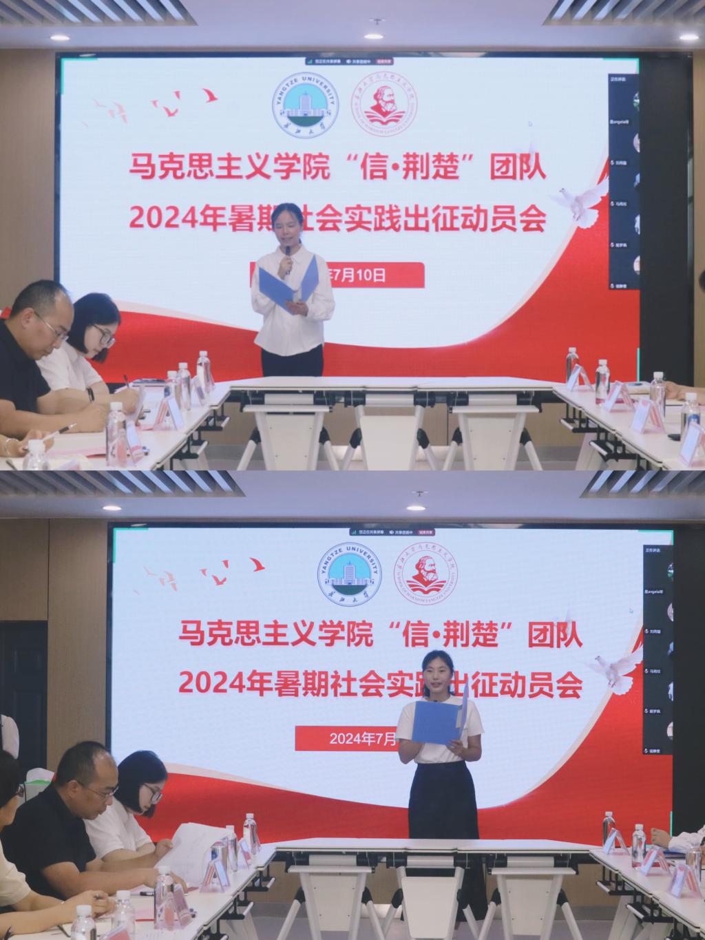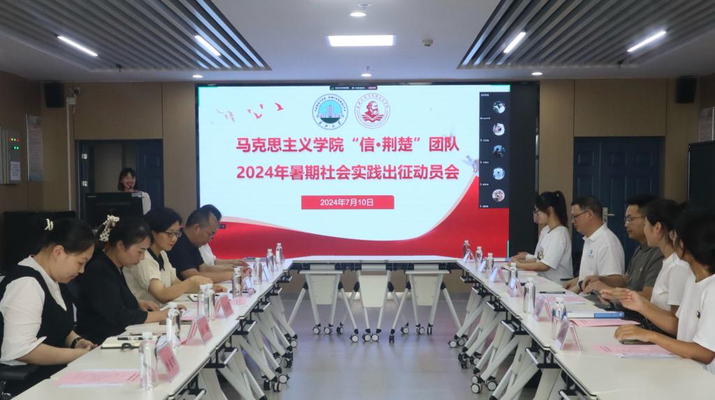 (通讯员 冯星雨/文 唐佳雨/摄)为深入学习贯彻党的二十大精神和习近平总书记对学校思政课建设的重要指示精神,进一步推动“信·荆楚”成为党史学习教育常态化长效化开展的有效载体。7月10日下午,suncitygroup太阳集团网址在文科楼1008室召开“信·荆楚”团队2024年暑期社会实践出征动员会。长江大学团委书记毛德波、本科生院副院长孙细望、“信·荆楚”团队全体成员参加会议。