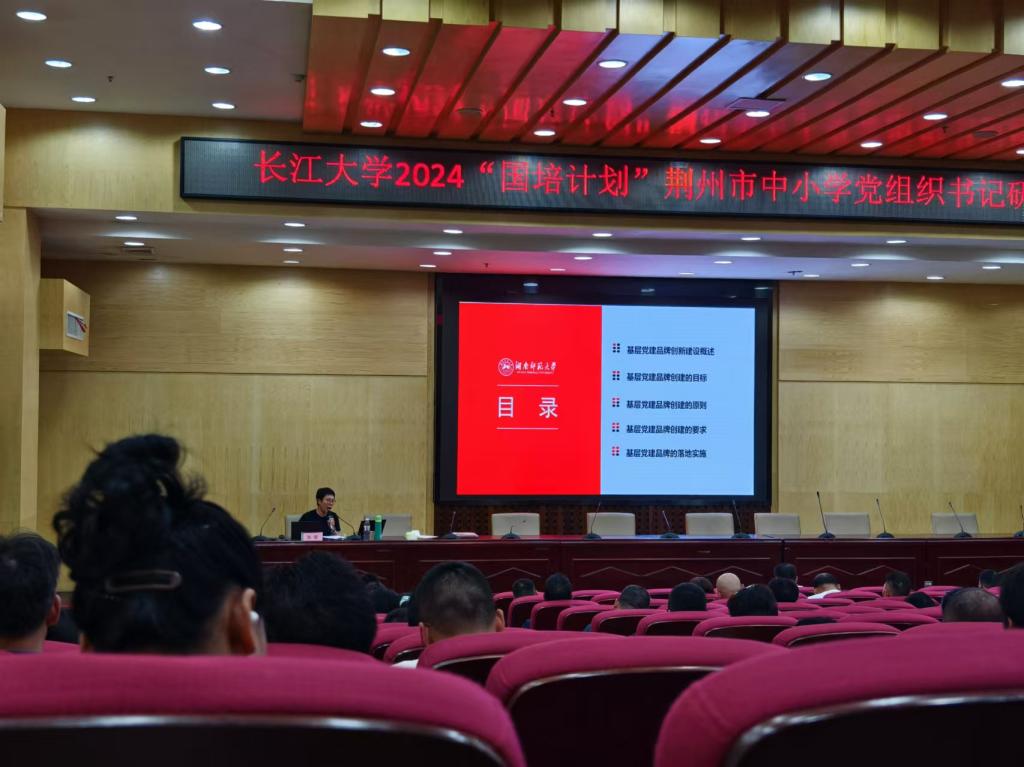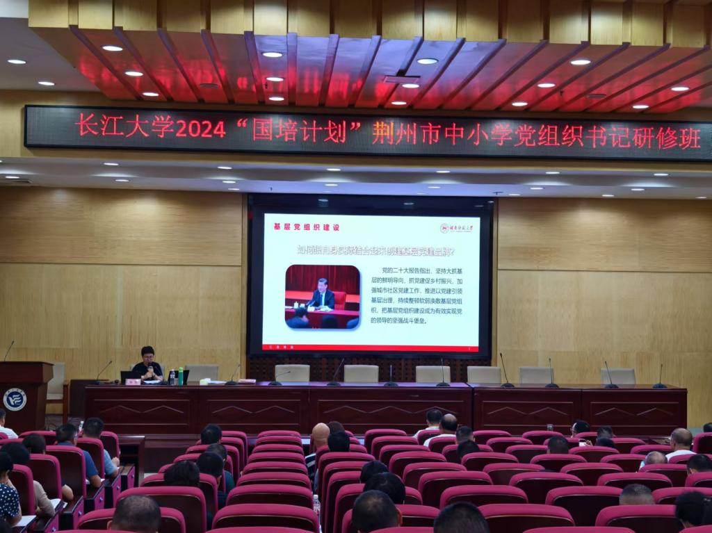 2024 年 8 月 10 日下午 ,长江大学 2024“ 国培计划”荆州市中小学幼儿园党组书记研修班全体学员进行了以“基层党建品牌创新建设”为专题的研修学习。来自于湖南师范大学suncitygroup太阳集团网址的副教授、硕导张燮为学员们进行了专题指导讲座。该讲座由第七小组组长胡敬新主持。