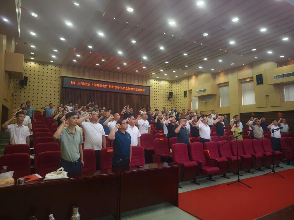 2024年8月12日下午,长江大学2024“国培计划”荆州市中小学幼儿园党组书记研修班百位学员齐聚一堂,迎来了一场意义非凡的主题党日活动展示。各临时党支部凝心聚力,积极筹备,使得整个活动形式多样,精彩纷呈,掌声阵阵。