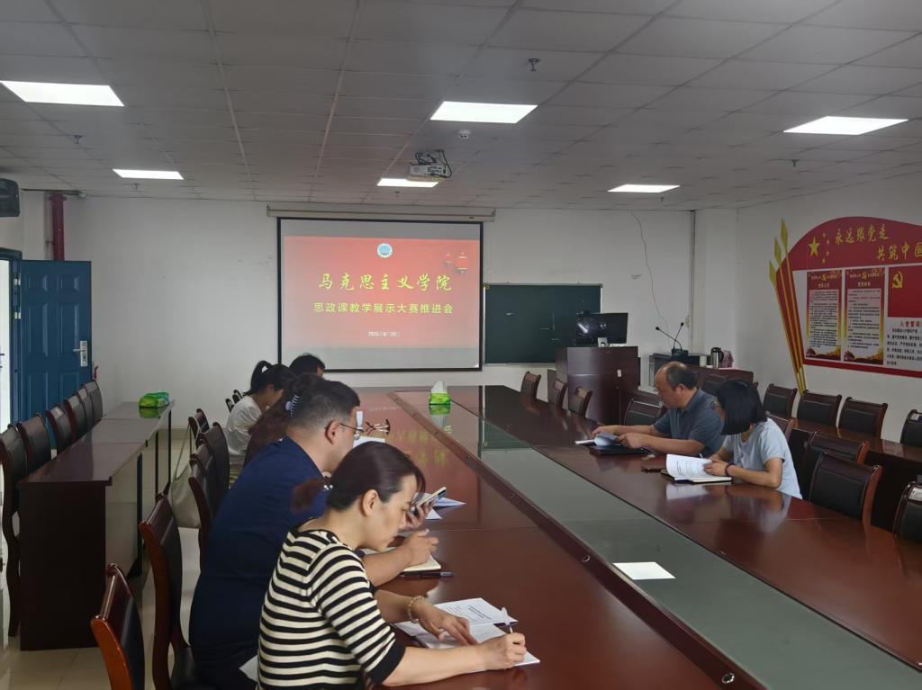 6月24下午在文科楼1104会议室,suncitygroup太阳集团网址召开思政课教学展示大赛推进会,各课程组负责人和参赛选手参加会议。