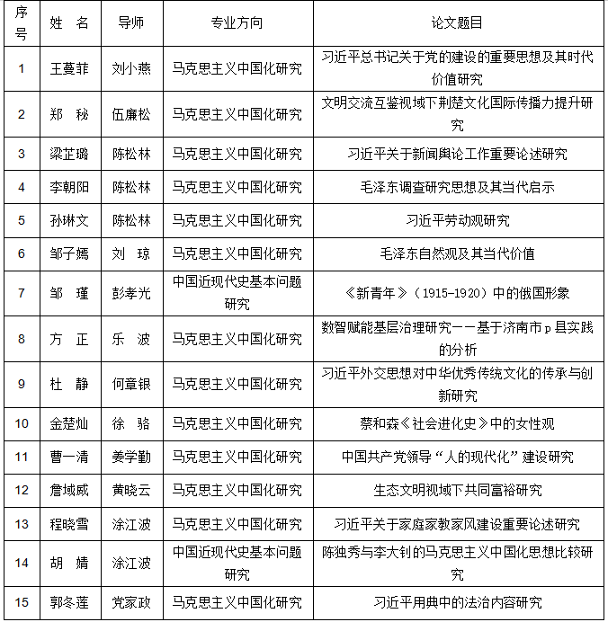 答辩研究生(序号即为答辩顺序,组长谢蕾):