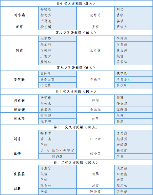 附录:毕业论文交叉评阅分组一览表