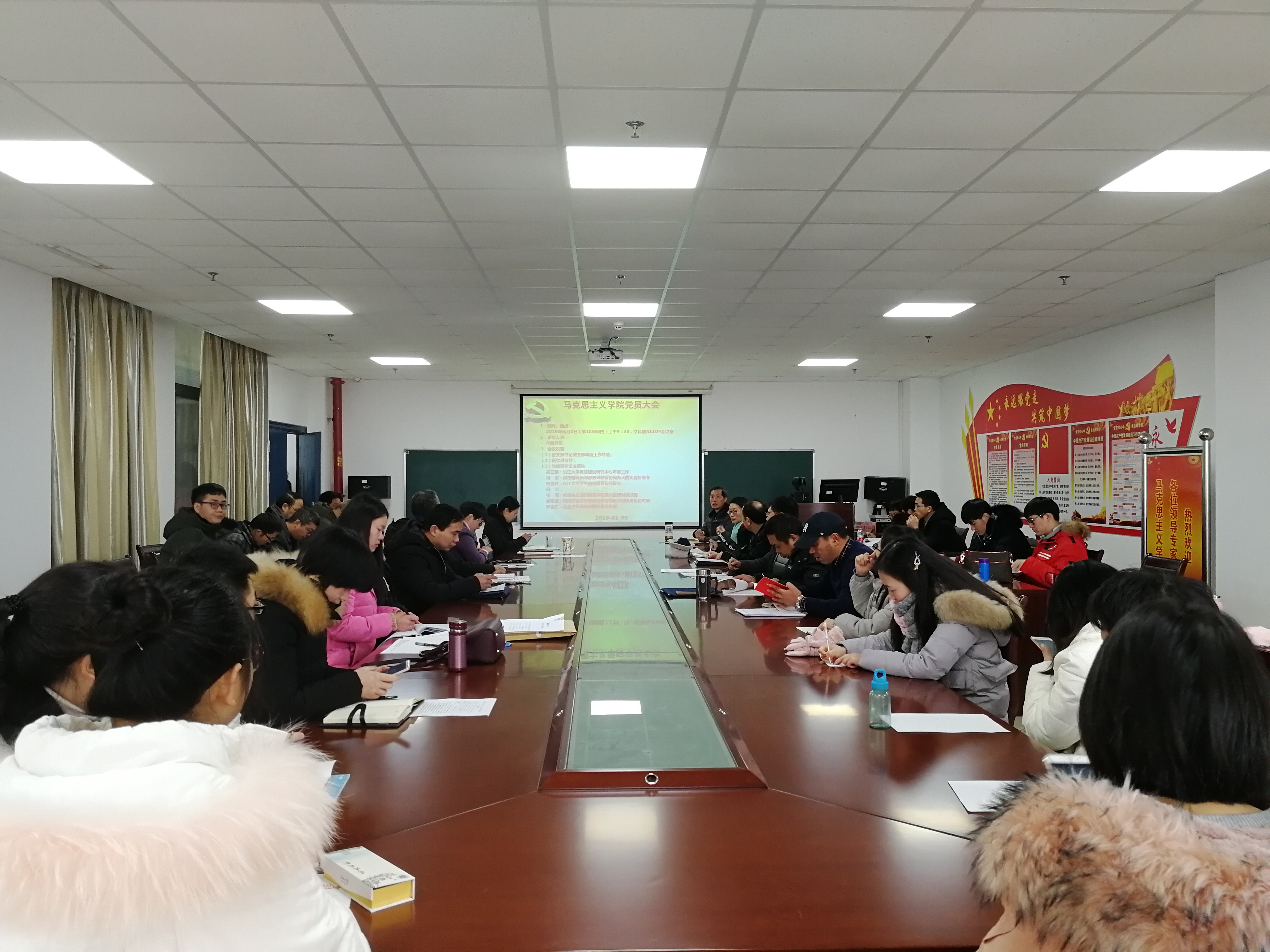 suncitygroup太阳集团网址于2019年1月3号上午十点在文科楼1104会议室召开了全院党员大会。本次会议由suncitygroup太阳集团网址党委书记吴智勇主持。全院教师党员、学生党员参与了本次会议。本次大会分两项,第一项:各支部书记做支部年度工作述职;第二项:新党员宣誓。