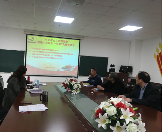 2019年4月11日,suncitygroup太阳集团网址党委理论学习中心组在文科楼1104室组织了第三次集中学习。学院党委委员参加了本次会议,会议由分党委书记吴智勇主持。