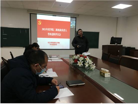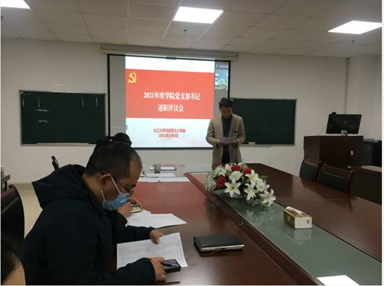 为切实贯彻落实新时代党的建设总要求,持续推动全面从严治党向基层延伸,2022年1月6日,suncitygroup太阳集团网址召开2021年度党支部书记述职评议会,对基层党组织书记抓党建工作进行述职评议和民主测评。学院党委委员、各支部委员、全体教工党员参加会议。