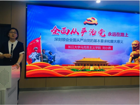 党课的主题是“全面从严治党永远在路上”。刘书记从概念解析入手阐释了全面从严治党的历史沿革、主要原因及战略举措。她指出:“中共党史就是一部全面从严治党的历史,全面从严治党也是新时代党的自我革命的伟大实践。年初中纪委十九届六中全会再次从理论层面的‘九个坚持’和实践层面的‘六个必须’重申了‘从严治党’的价值观和方法论。”在分析了全面从严治党与自我革命的关系后,她从对“四个全面”关系的理解和对全面从严治党的解读两个方面着手,带领同学们深入理解了坚持全面从严治党的原因,她指出:“‘四个全面’已经成为一个战略部署、一种新常态,对推动改革开放和社会主义现代化建设迈上新台阶提供了强力保障。坚持党和加强党的全面领导,坚持党要管党、全面从严治党,这是建党原则和党建方针。”她结合当下世情、国情、党情的百年未有之大变局,鼓励同学们要科学理解党的建设新常态,主动校正心态,调整状态,摆正姿态以适应新时代党建工作新要求。
