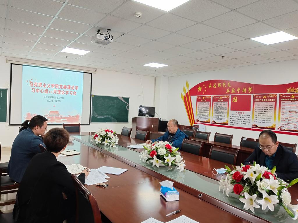 11月7日下午,suncitygroup太阳集团网址党委理论学习中心组在文科楼1104室组织11月份政治理论学习活动,会议由学院分党委副书记马小佼主持。