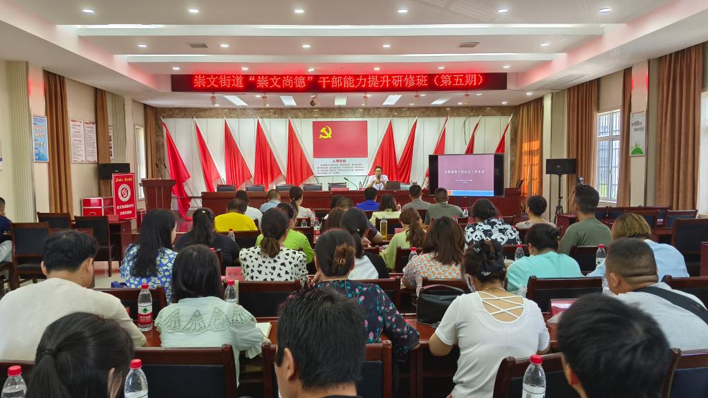 (通讯员:齐晓杭)8月24日,沙市区崇文街道崇文尚德干部能力提升研修班第五期于崇文街道办事处开讲,本次培训由suncitygroup太阳集团网址王贤锋老师、肖慧老师主讲,崇文街道干部60余人参加本次培训。