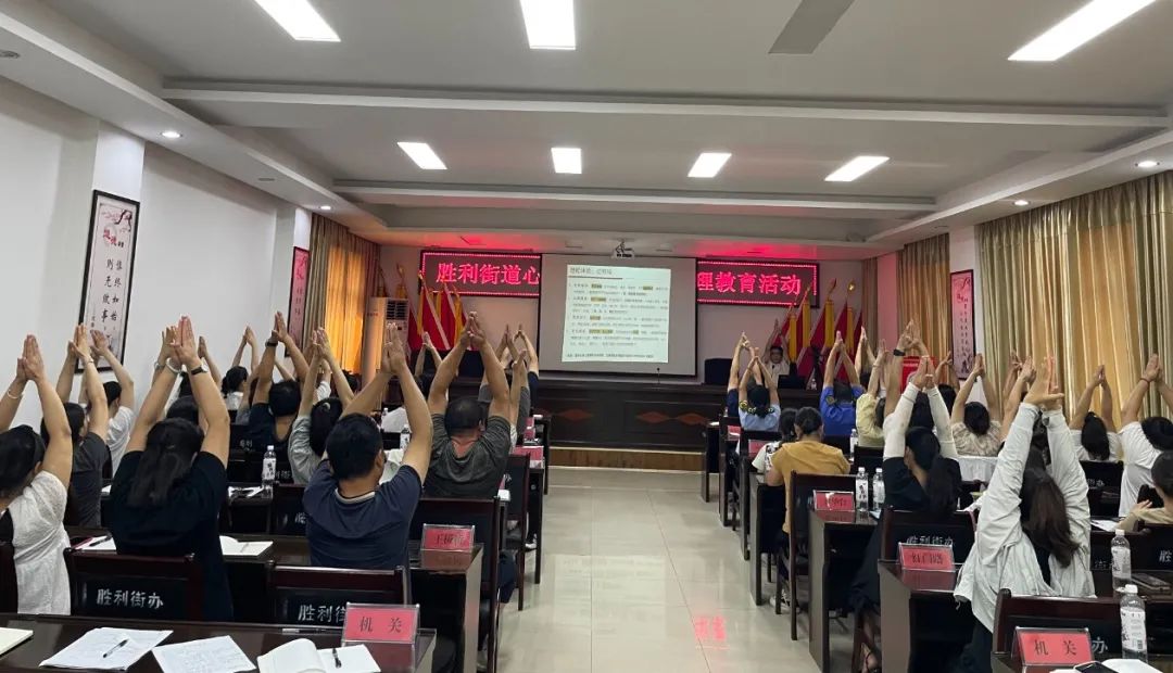 为引导广大干部职工缓解压力与情绪,进一步激发干事创业热情,8月2日上午,胜利街道开展“多彩胜利”干部能力素质提升研修班第二期培训,该街道全体班子成员、机关社区党员干部、预备党员和胜利执法中心、派出所和市场监管所共70余人参加培训。