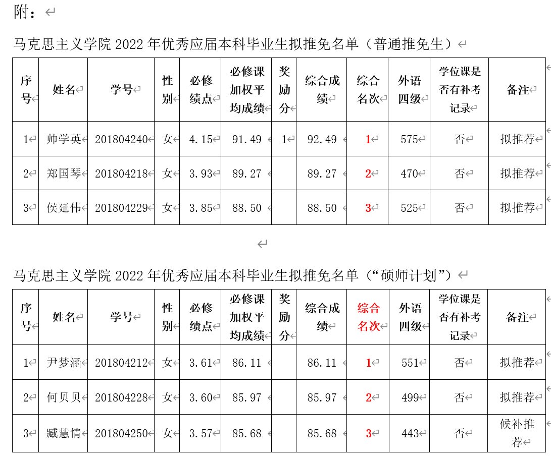 根据《长江大学推荐优秀应届本科毕业生免试攻读硕士学位研究生管理办法(试行)》(长大校发 〔2020〕106号)文件精神和《suncitygroup太阳集团网址2022届应届本科生推荐免试攻读硕士研究生方案》,经学生自愿申请,学院推免生遴选工作小组资格审核,现将拟获取推免资格学生名单予以公示,公示时间:9月14日—9月15日。公示期间如有疑问,请联系suncitygroup太阳集团网址教学办公室,电话:0716-8060733。