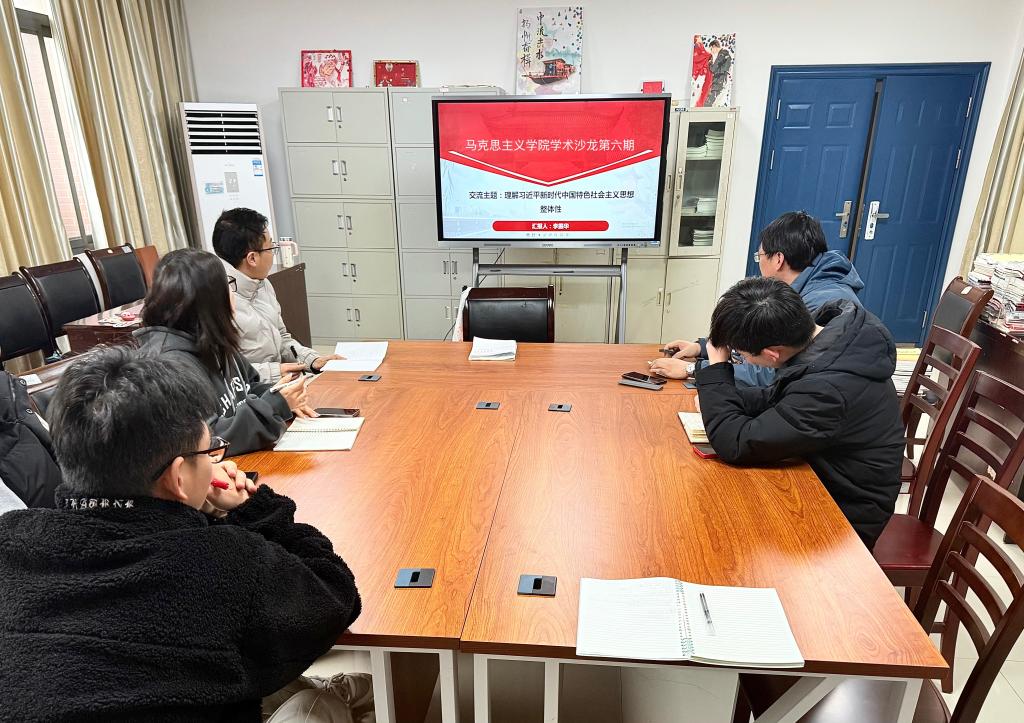 (通讯员 姚雨田)智慧星辰照新途,共探新思想浪潮。suncitygroup太阳集团网址于3月13日在文科楼1002室举办第六期求实导师学术沙龙。李振华副教授围绕“习近平新时代中国特色社会主义思想的整体性”与老师、同学们展开了交流。