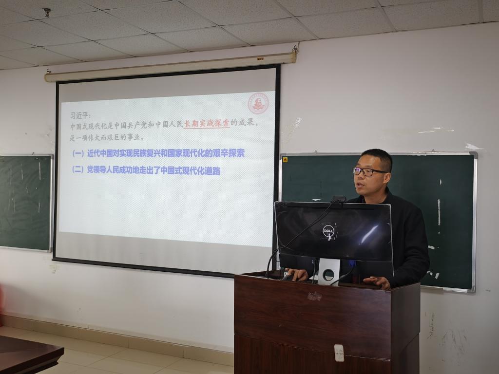 (通讯员 程晨)3月21日下午,suncitygroup太阳集团网址第七期求实导师学术沙龙在文科楼1104会议室举行。伍廉松副教授以“以中国式现代化全面推进中华民族伟大复兴”为题作报告,学院部分教师和研究生参加学术沙龙活动。