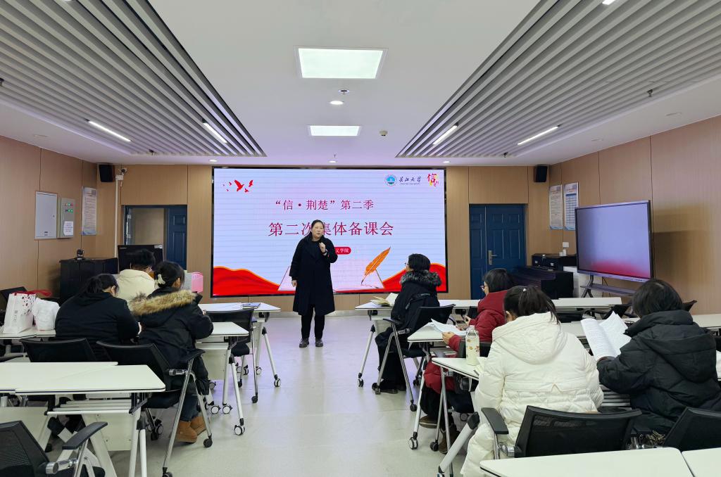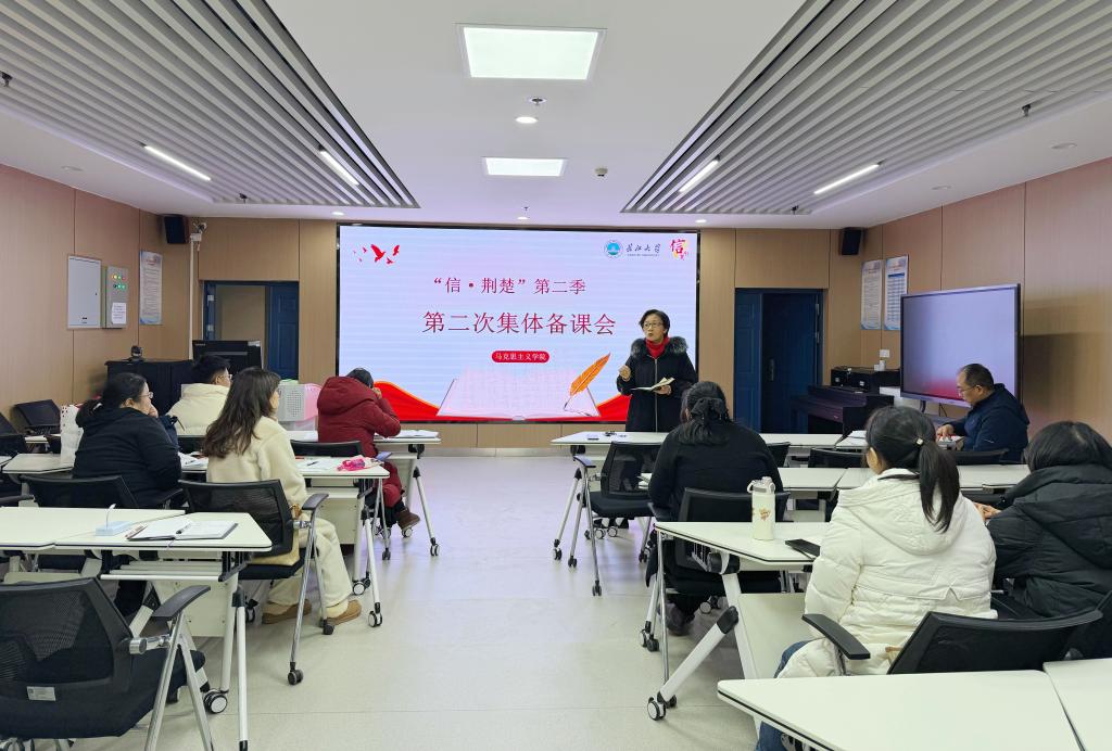 (通讯员 黎娟 )为进一步提升校本特色思政公选课《信·荆楚》课程质量,提高教学管理水平。1月16日下午,“信·荆楚”课程组教师在文科楼1008室召开2025年春季学期第二次集体备课会。会议由课程教研室主任郭辉老师主持。