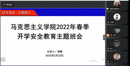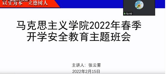 为保证新学期开学工作开展,suncitygroup太阳集团网址于2022年2月15日通过腾讯会议召开了3场春季开学安全教育主题班会,集中讲解相关注意事项。