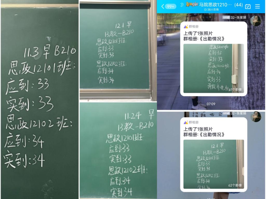 学院按照领导老师的有关要求,积极倡导大一年级同学早晚自习,并对早晚自习进行规范管理。在2021级学生结束军训之后,学院就组织学生统一进行早晚自习,辅导员、班主任和学创部同步跟进行课堂出勤情况抽查,学院团委学生会干部也一同协助辅导员、班主任进行早晚自习管理。在学院统一要求指导下,大一年级自觉制定了早晚自习考勤制度,加强自我管理,落实自我监督。课堂前五分钟,学创部值班同学准时到达抽查班级所在教室进行课堂点名,同学们热情应答,积极反馈,状态良好;自习前五分钟,班级学习委员本着认真负责的态度,早晚自习落实人数和请假原因,将出勤情况详细的记录在黑板上并及时上传班级群。