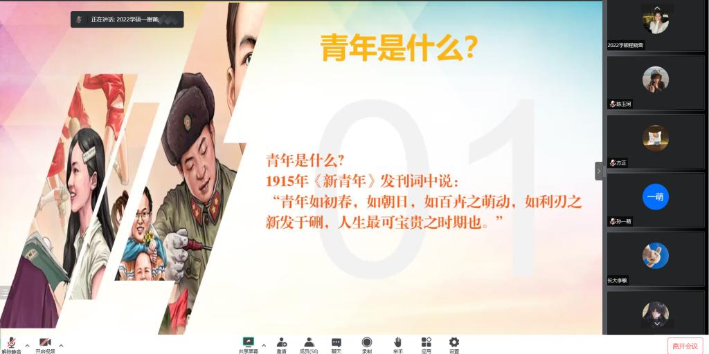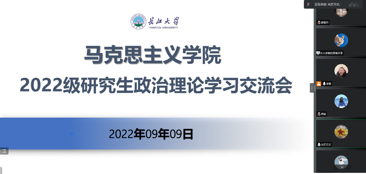 (通讯员 薛雯丹)2022年9月9日下午,suncitygroup太阳集团网址通过腾讯会议召开2022级研究生政治理论学习交流会。学院党委副书记马小佼、2022级全体研究生参加会议,辅导员李敏主持会议。