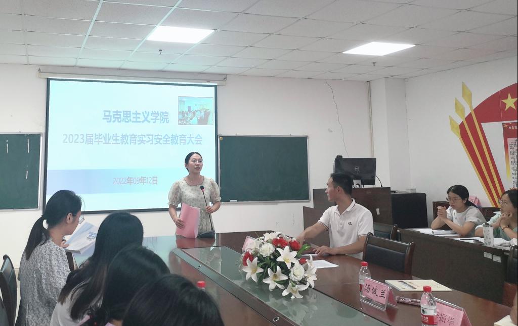 为做好学院2023届毕业生考研、就业、教育实习工作,2022年9月12日下午,学院在文科大楼1104召开了2023届毕业生就业动员大会暨教育实习安全教育大会。学院党委副书记马小佼、副院长涂江波、院长助理李振华、副教授汤波兰、学工办主任张云雾、就业专干李敏和全体2023届本科毕业生参加会议。