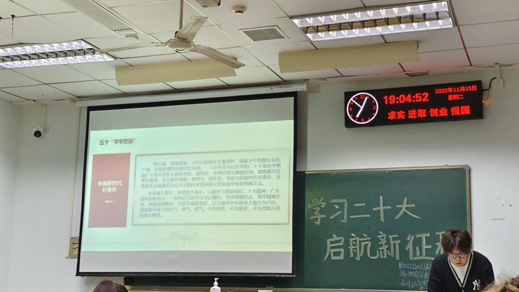本次主题团会各支部采取线上与线下相结合的方式进行学习。22级两个支部从五个历史角度分析我们和我们的党为什么要牢牢把握过去5年工作和新时代10年伟大变革的重大意义,很大程度上加深了成员们对党的二十大精神的理解和感悟,并且主讲人还号召成员们要争做新时代好青年,在班级内形成了强烈共鸣。21级两个支部聚焦了习近平总书记在革命圣地的讲话,带领成员们再次回顾、感受延安精神。主讲人对习近平总书记的指示做出了详细的阐述与说明,带领同学们剖析了习近平总书记的讲话重点,提醒同学们时刻坚定弘扬延安精神,站稳人民立场。21专硕支部通过奏唱中国共青团团歌的形式,激发学生的爱国情、强国志、报国行,引导大家树立远大理想和抱负,将实现个人价值的目标与时代奋进的目标结合起来,在不懈奋斗中实现人生价值。二学位支部的成员以视频的方式对劳动教育进行了特别学习,了解了铁人王进喜的生平事迹,告诉同学们热爱劳动,尊重劳动,树立新时代劳动价值观。