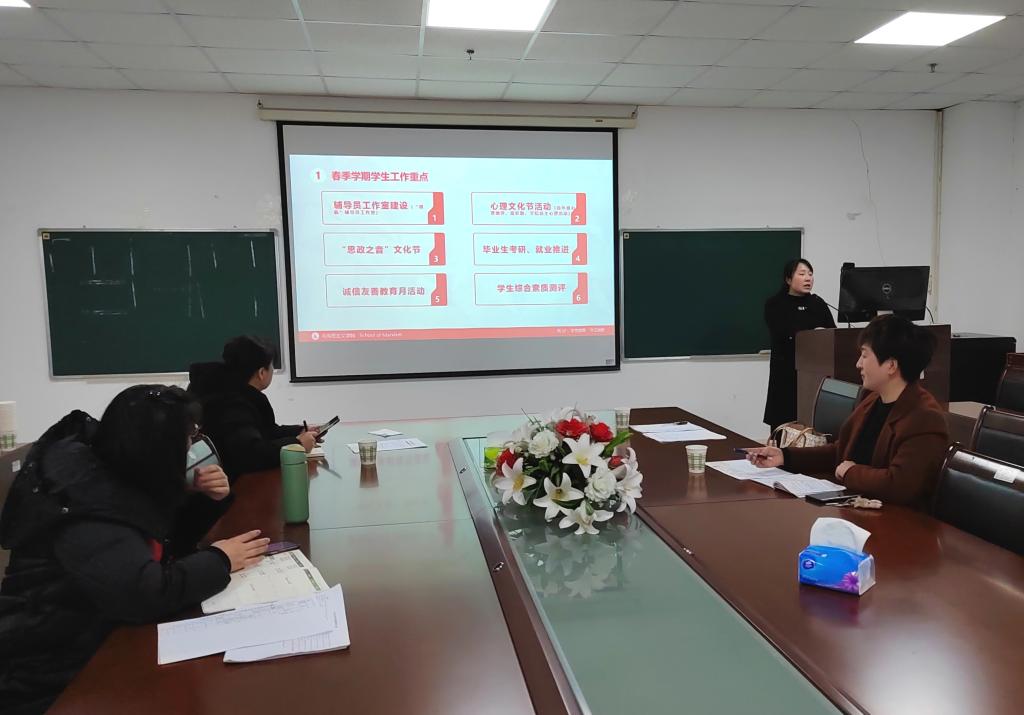 2月12日下午,suncitygroup太阳集团网址在文科楼1104室召开新学期班主任工作会,部署开学初及本学期重点工作。