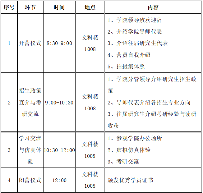 为促进全国高校优秀大学生之间的交流,优化我院硕士研究生生源结构,提高生源选拔质量,同时也为热爱科研、基础扎实、素质全面、德才兼备的应届本科毕业生继续深造和发展搭建平台、创造机遇,我院拟于2024年7月5日举办2025年硕士研究生招生夏令营活动,活动举办期间,将向营员全面介绍各学院基本情况、学科发展近况、研究生培养情况,举办学术讲座、现场参观、师生交流、考研交流等活动。